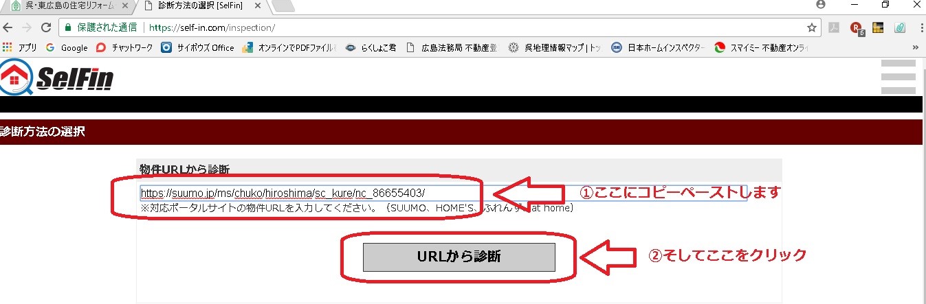 下記の部分に、コピーしたURLを張り付けて、いざ、「URLから診断」をクリック!!!
